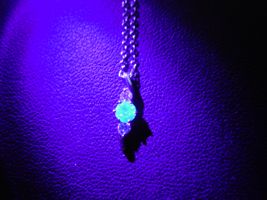 ブラックライトに反応し碧く輝くダイヤ・・。
