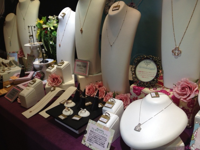 ジュエリー 春の大創業祭 投稿者: 1sd 投稿日: 2013年5月27日 こんにちは、企画課の山下です 金曜日から開催中の「春の大創業祭」も本日が最終日となりました。 会場にお越しいただきました大勢の皆様、本当にありがとうございます 会場内には素晴らしいジュエリーがずらり!!! スタッフも試着して楽しんでます 本日も一人でも多くのお客様に楽しんで頂けるよう頑張ります