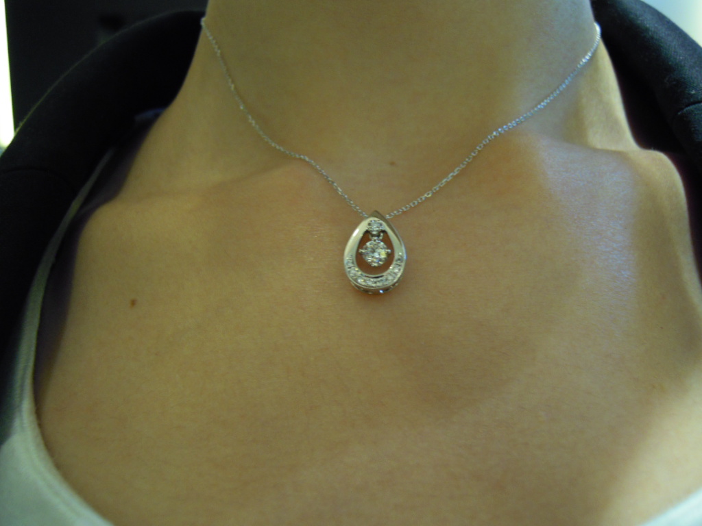 揺れるダイヤのペンダント 真ん中のお石は、Hカラー・SI2・Goodとハイグレード