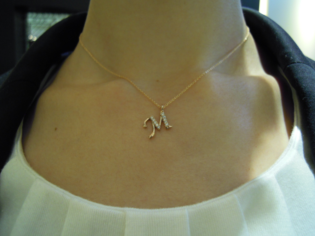 イニシャルペンダントもありますので、彼女さんへのプレゼントや、ファーストジュエリー、ご自分へのご褒美にも良いですよ