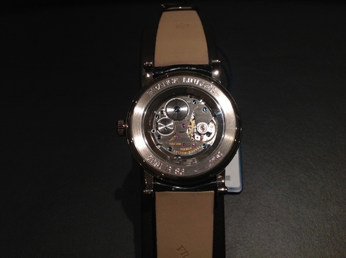 シンプルな手巻きモデルです。実はフランク・ミュラーは独創的なケース形状のモデルばかりでなく、オーソドックスなラウンドモデルも独立時計師時代から手がけています。