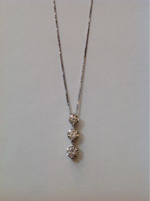 女性が幸せになれる吉数である「3」石のダイヤが、エレガントに胸元で輝きます。