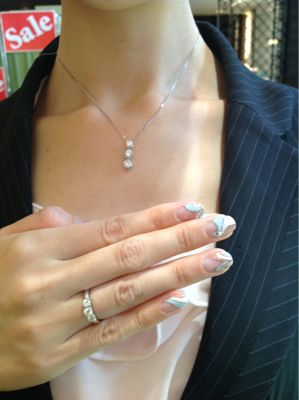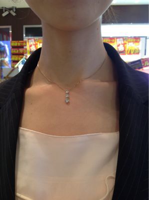 女性の憧れ、スリーストーンダイヤネックレスです。