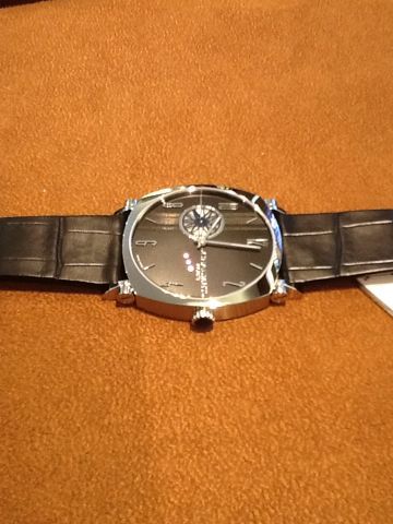 9時位置にある歯車が時計と共に動き、ラグジュアリーさを引き出してくれる、まさに男性につけて欲しい時計です