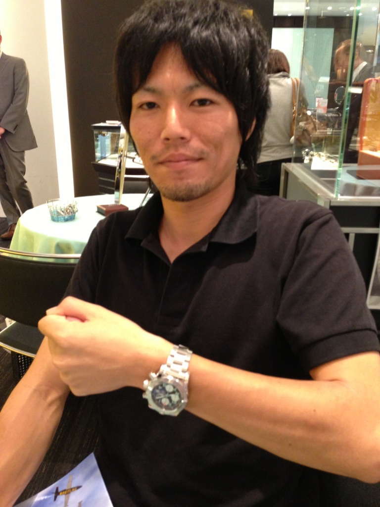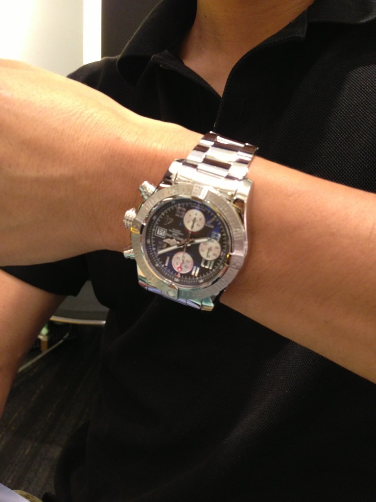 時計 ダンディな1本!! 投稿者: 1sd 投稿日: 2013年9月15日 こんにちは、かなえ本店の市川です。 世界の時計博を開催中のかなえ本店はとても賑やかな1日でした ご来店頂きました皆様ありがとうございました お友達お2人でお越しのK様ご来店ありがとうございました!! 人気のブライトリングアベンジャーをお求め頂いきました ダンディなK様ブライトリングがとてもお似合いです 「ブライトリングは重厚感や輝きがすごい」と決めて頂きました ありがとうございました!! また遊びにいらしてください
