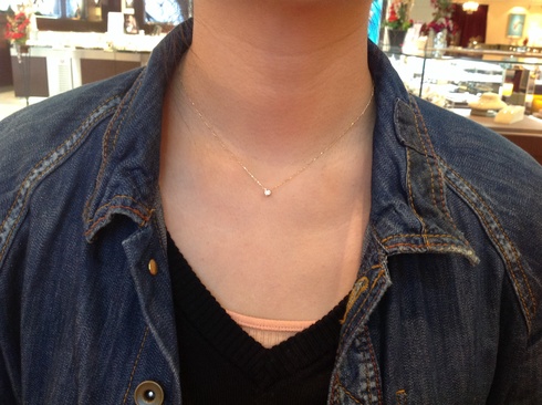イエローゴールドのネックレスをお探しということで、一真堂のプチダイヤモンドネックレスに決めていただきました
