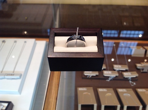 よく見るとシンプルなつくりの中に側面には幸せを呼ぶと言われるブルーダイヤをセッティング。