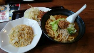 ラーメン、餃子、チャーハンのセットで非常にボリュームがありました。