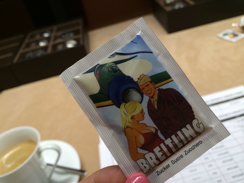 食後のコーヒーのシュガーまでブライトリングですよ!