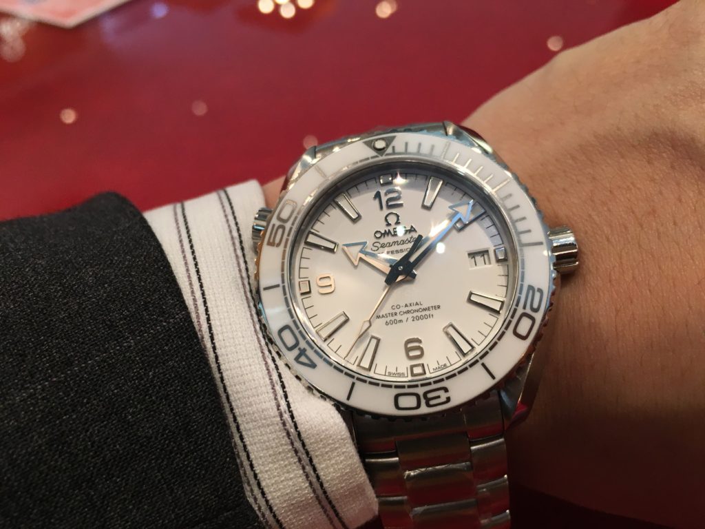 ダイアルは光沢のあるホワイトセラミック製、ベゼルもオメガリキッドメタルを備えたホワイトセラミック!