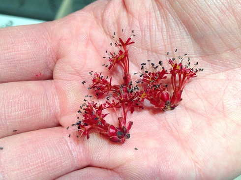 道バタに落ちているお花を拾って、マジマジ見てみる
