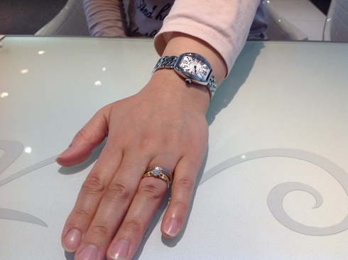 以前お求め頂きました、フランクミュラーの時計と輪のマリッジリングとパシャリ