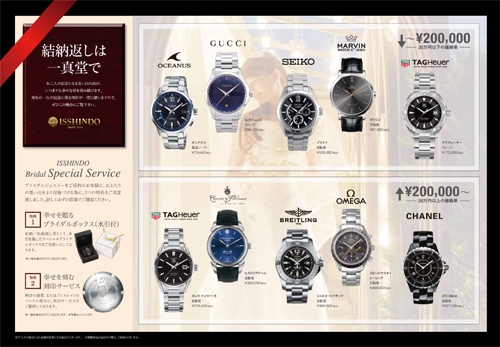 お二人でお揃いのペアウォッチ、結納返しの時計などもご用意しております。
