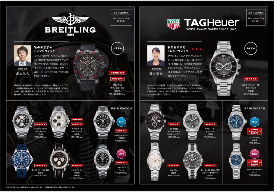 お二人でお揃いのペアウォッチ、結納返しの時計などもご用意しております。