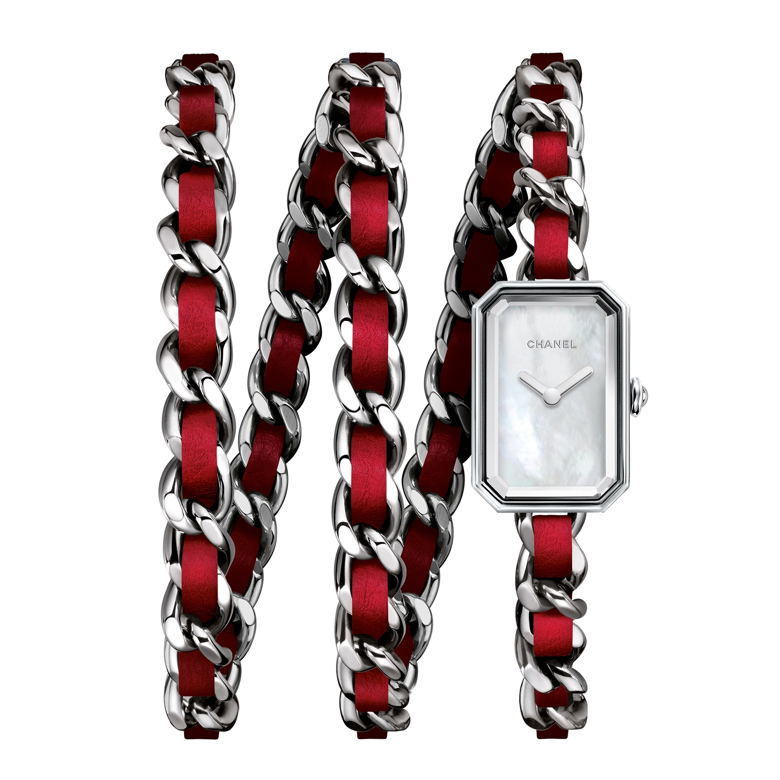 レッドレザーを編み込んだ3連ブレスレットが映える注目の新作。