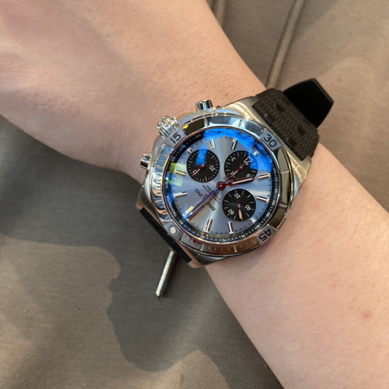 クロノマットはプライベートでのレジャーやビジネスシーン、パーティの華やかな席など、あらゆる場面での要望に応えることができる、ブライトリングを代表する万能な腕時計です。