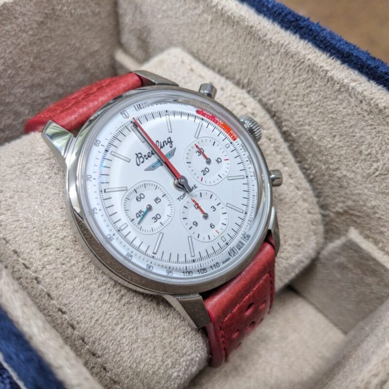 ブライトリングのトップタイムは、シボレー、フォード、シェルビー、デウス、トライアンフといったクラシックカーやバイクのパートナー各社とのコラボレーションを通して、現代のドライバーやバイカー、サーファー、デジタルノマドなどスピードとスタイルを追い求める人のためのウォッチです。