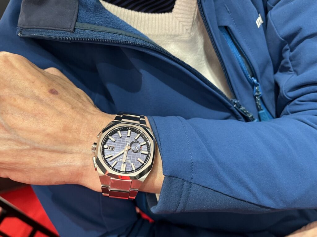 この度はブルージュ一真堂へご来店いただき誠にありがとうございます。お選びいただいたSEIKOアストロンはGPSとソーラー電波機能を兼ね備えた時計です。色々な時計を比較した上で、こちらのアストロンをとても気に入っていただきました。新しい時計とともに、ご夫婦の新たな時間を刻んでいただければと思います。また、クリーニング等でお気軽お越しください。