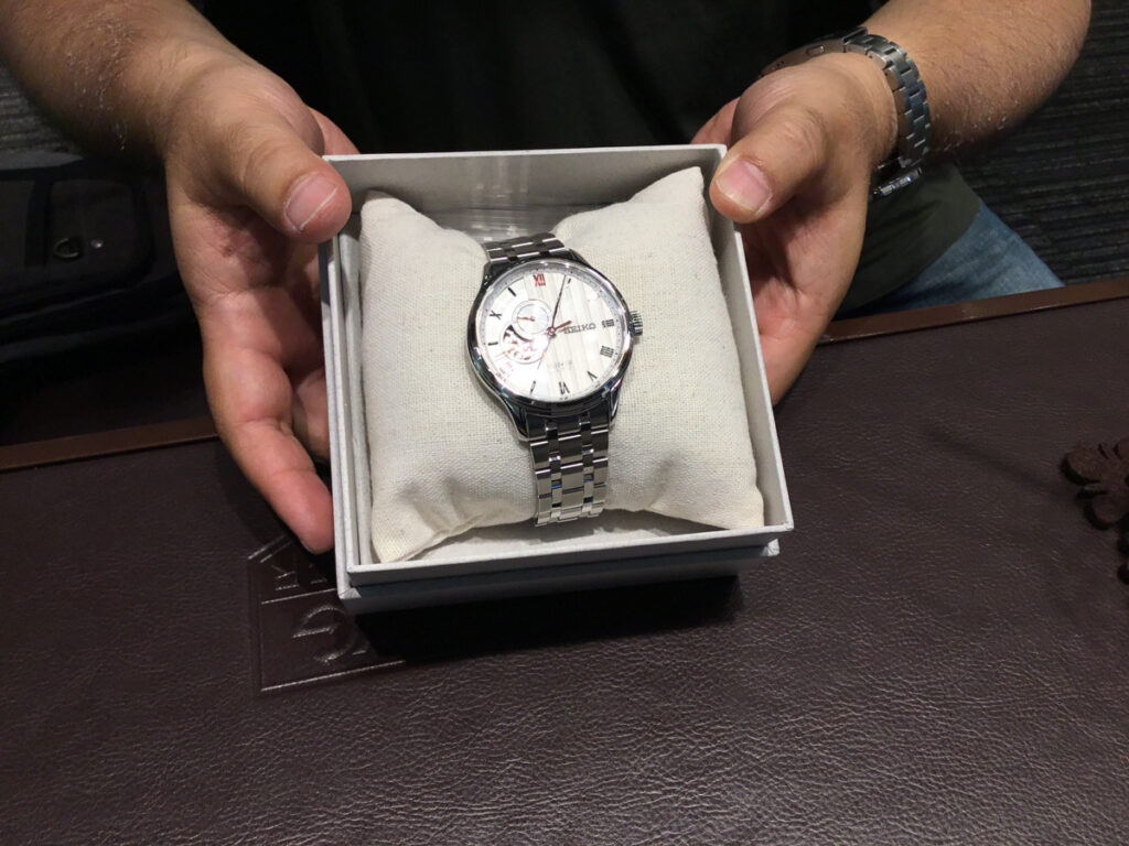 お客様の新しいコレクションに加えていただき、ありがとうございます!今回お選びいただいた時計は、日本庭園にインスピレーションを得た美しいダイヤルが魅力のデザインシリーズです。日本庭園の砂紋をイメージした立体模様のダイヤルがとても美しいモデルは、今までにない雰囲気で様々な場面で活躍してくれることと思います。新しい相棒としてご愛用くださいませ。