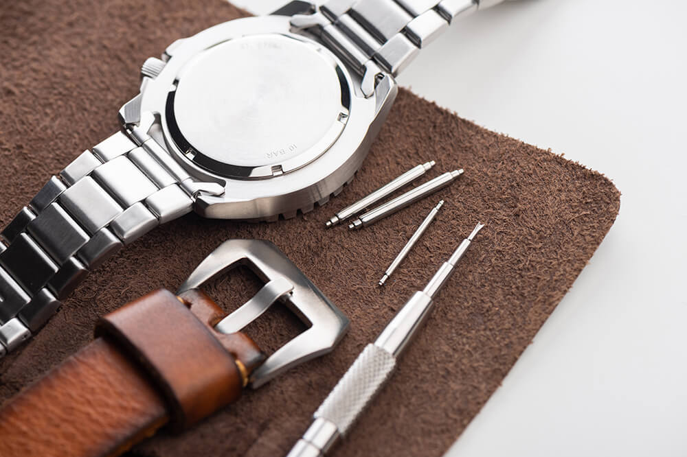 革ベルトへの付け替え交換や、ブレスレットのサイズ調節を無料で行います。